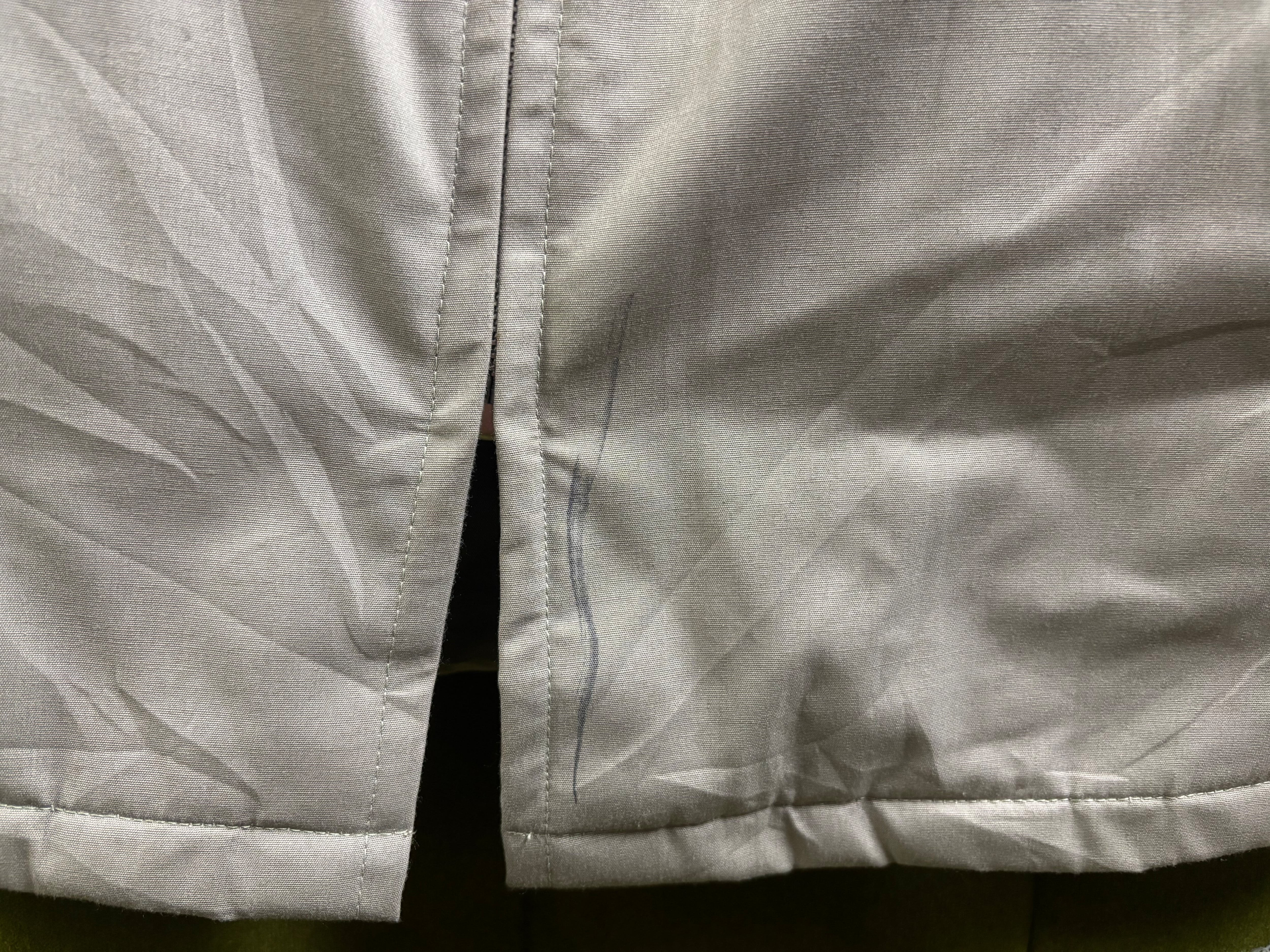 目立ったダメージもなく裏地の状態も完美品ですが、最後の写真2枚に載せていますが、表面ジップ差し込み口付近に縦に10cm程の油性マジック痕があるのと、裏面左脇下にシミ汚れがありますのでご確認下さい!