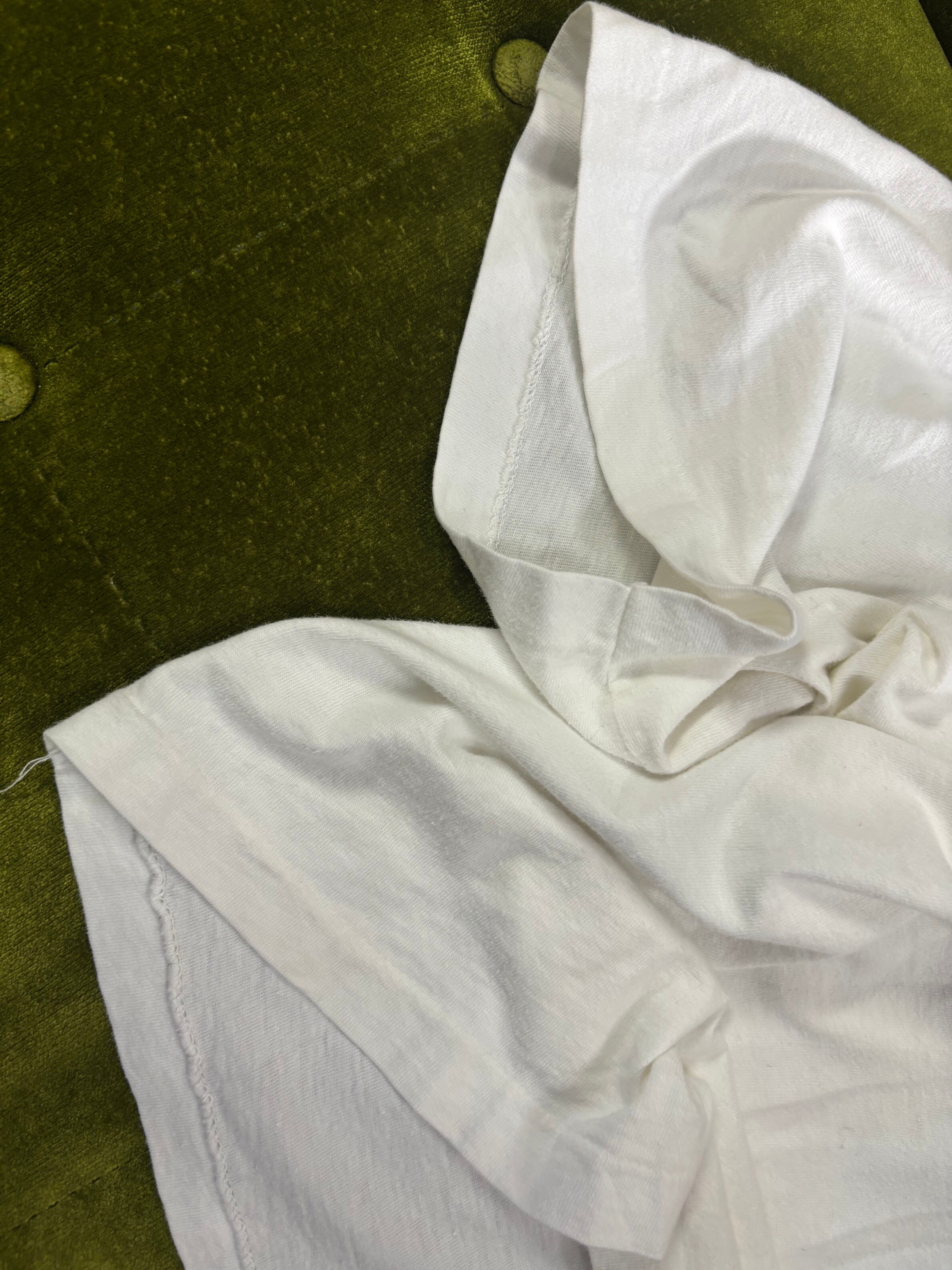 ボディメーカーはADOBE APPAREL、素材はヘビーコットン100%、カラーは白、両面プリントで状態もまずまず良いです。